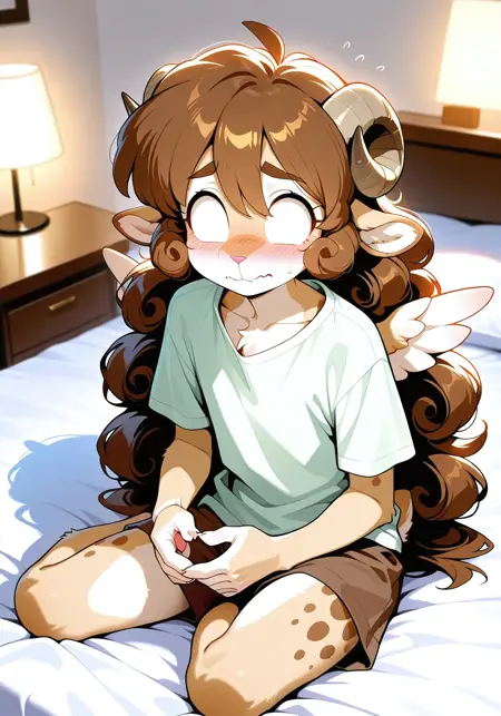 主要标签: ram, 灰色卷曲角,米色皮肤,米色毛发,卷发,棕色卷发,小天使翅膀,空洞眼睛,白色空洞眼睛,长发,矮小,身高短