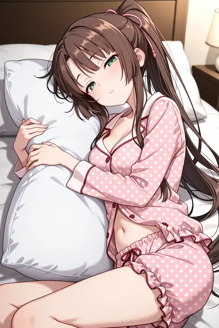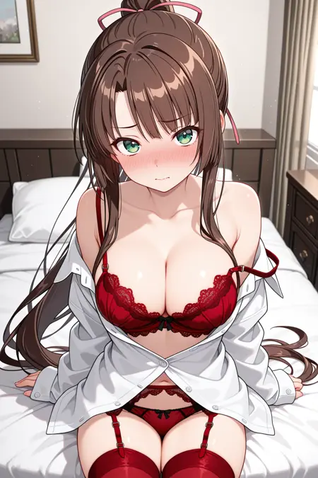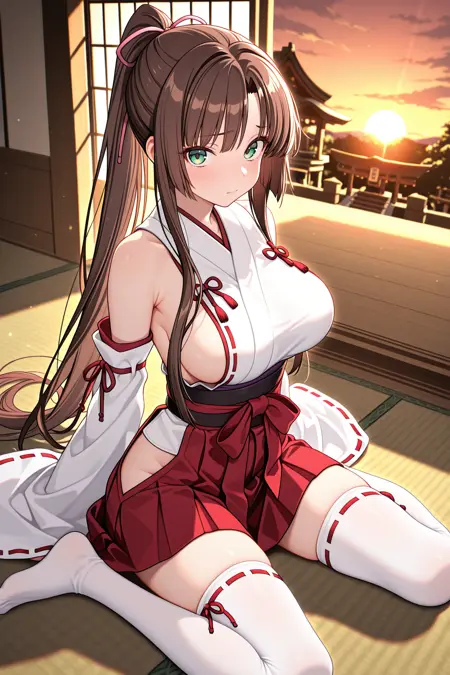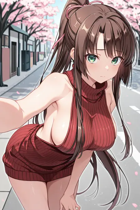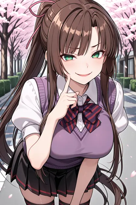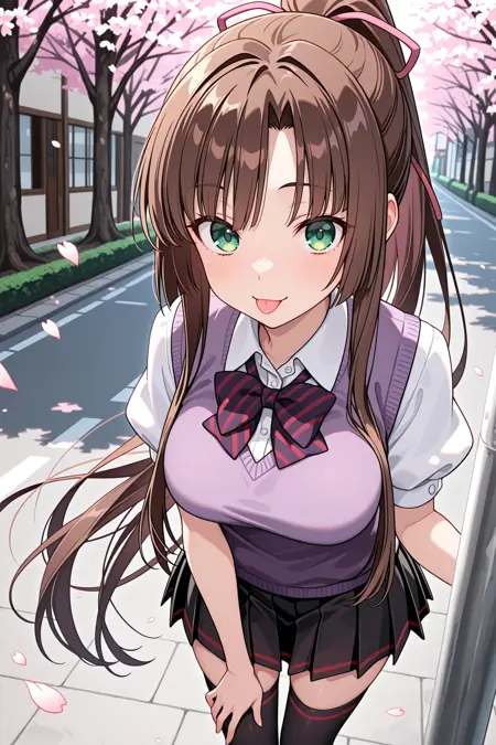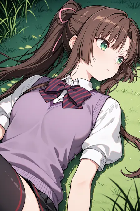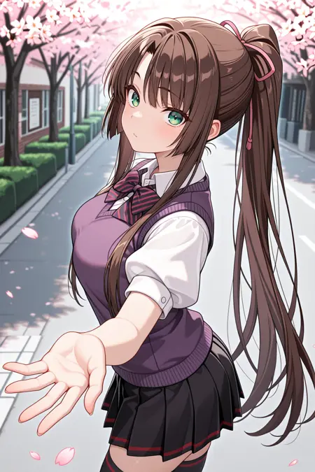 kirasaka sayaka, 绿色眼睛,非常长的头发,马尾辫,侧发,高马尾,棕色头发