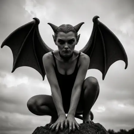 Gargoyle goth cinematic style F1D + Illu + Pony