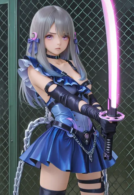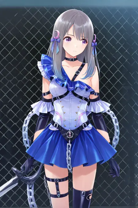 | Trained Words | holding weapon, sword,Copied! kasuga shiho,(long side lock), 1girl, solo, long hair, medium breastCopied! reflector mode, magical girl, crescent hair ornament, single bare shoulder, frill, one shoulder dresses, belt shoulder strap, skirt, hair ornament, gloves, dress, thighhighs, bow, ribbon,hair ribbon, pleated skirt, black gloves, choker, belt, black thighhighs, elbow gloves, collar, blue skirt, thigh strap, black choker, blue dress, chain, single thighhigh, asymmetrical legwear, fence, asymmetrical clothes, harness, chain-link fence, cleavage, purple eyes, chain-link fence,Copied! school uniform, sailor uniform, sailor collar, shirt, medium skirt, brown hair, long sleeves, bow, pleated skirt, shoes, socks, serafuku, blue bow, black socks, black sailor collar, loafers, blue bowtie, bowtie, outfit 1,Copied! |