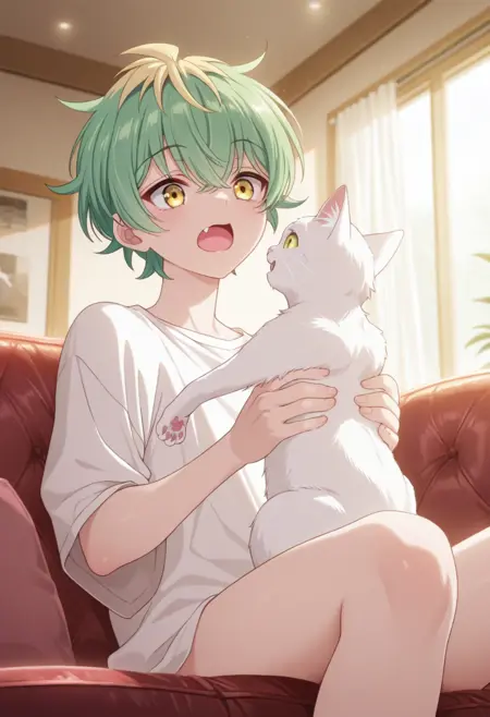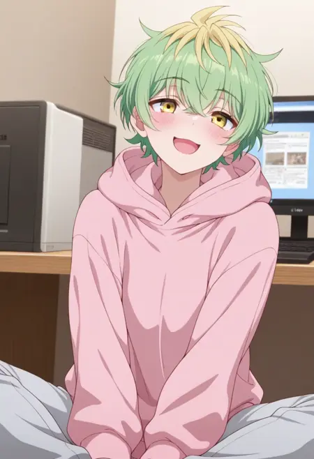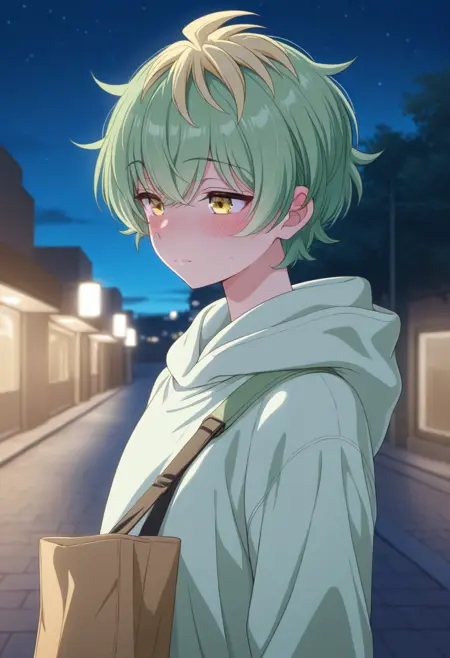 트리거 단어: mikadono miwa, 단발, 녹색 머리, 다채로운 머리, 금발, 노란 눈