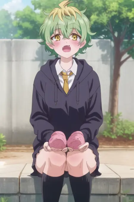 Trigger Words: mikadono miwa, short hair, green hair, multicolored hair, blonde hair, yellow eyes