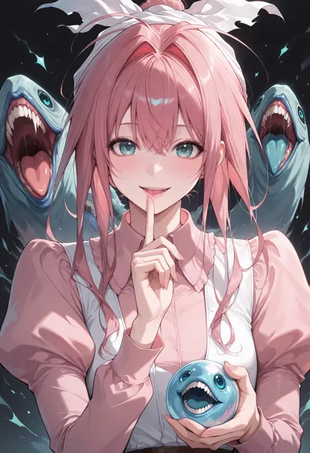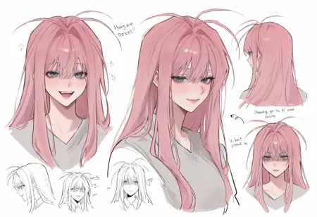 外見: 1人の少女、青い目、アクア色の目、緑の目、前髪、眉間の髪、長い髪、横髪、アホ毛、アンテナ髪、ピンクの髪(または青い髪)
