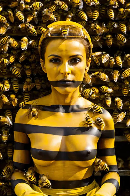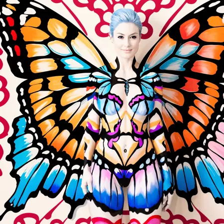 This LoRA was trained with images of women (and a few men) with camouflage bodypaint.