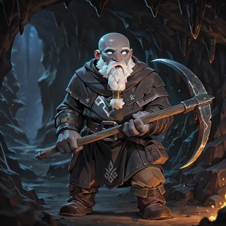 例: duergar, dwarf, grey skin, white hair, white eyes, warpaint, 1girl, long hair, black top,