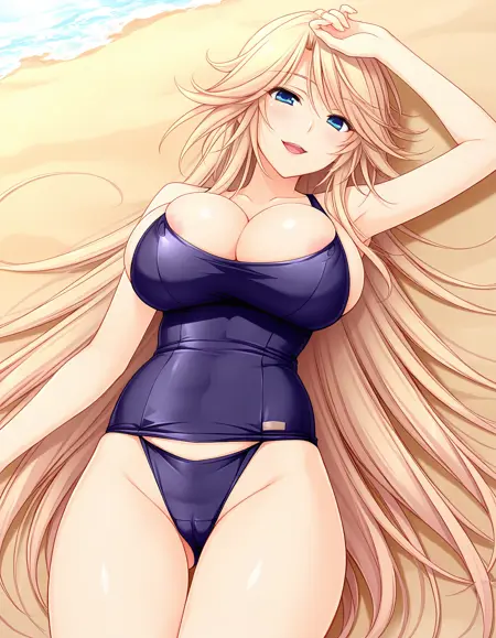 복장02, 수영복, 진한 파란 수영복, 오래된 스타일 수영복, 원피스 수영복, 캐멀토, 분홍 아레올라, 아레올라 슬립,