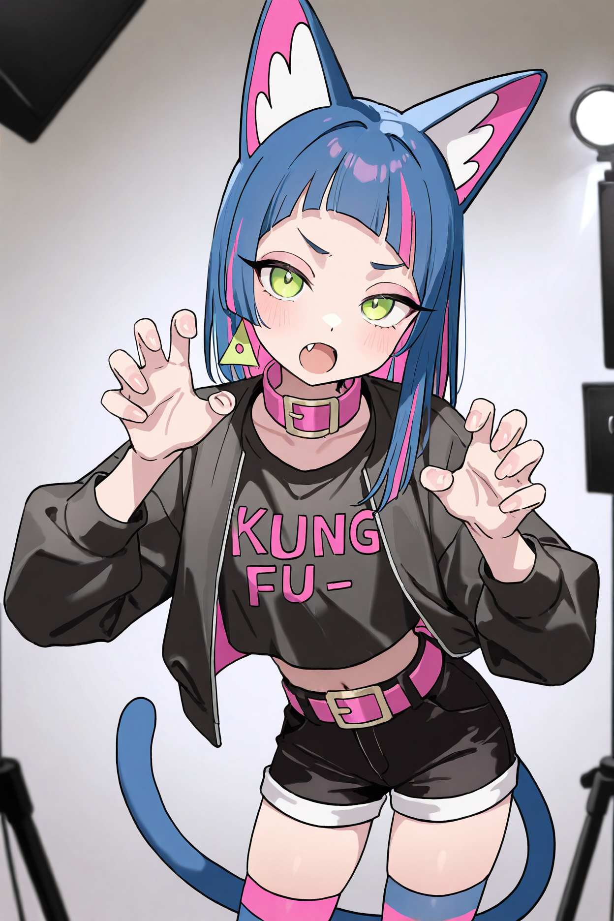 sammy \(kung-fu-piggy\), green eyes, streaked hair, cat ears, cat tail