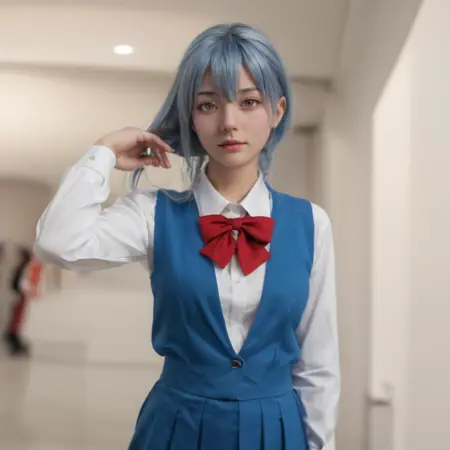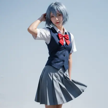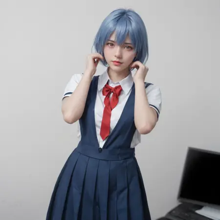 eva, ayanami, red eyes, seifuku, white shirt, loose necktie