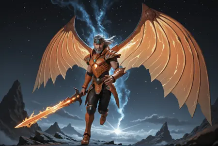 For more flexibility, lower the weight of the lora and use the base model's terms for "Dragon wings, Dragon Armor, Fantasy Armor", it moves away from the strict style but can yield some interesting results.