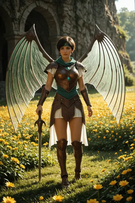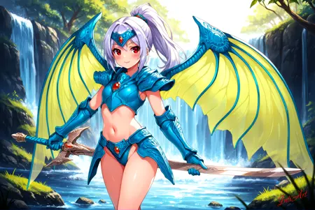 For more flexibility, lower the weight of the lora and use the base model's terms for "Dragon wings, Dragon Armor, Fantasy Armor", it moves away from the strict style but can yield some interesting results.