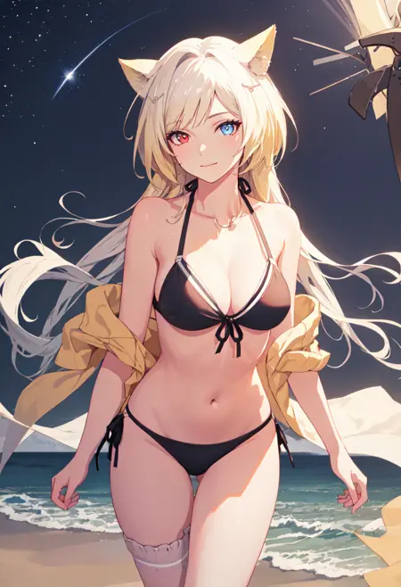 - 축소된 캐릭터 태그는 동물 귀, 긴 머리카락, 이색 홍채, 고양이 귀, 금발, 파란 눈, 머리 장식, 동물 귀 털, 붉은 눈입니다. 캐릭터의 핵심 특징(예: 머리카락 색상)이 안정적이지 않을 때 이 태그들을 프롬프트에 추가할 수 있습니다.