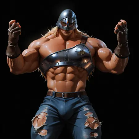 Default appearance: chest guard, fur trim, fingerless gloves, pants, torn pants