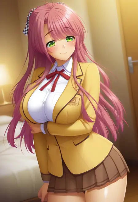 推奨プロンプト:Ayana Kurasawa, green eyes, pink hair, long hair, half-updo with ribbon,