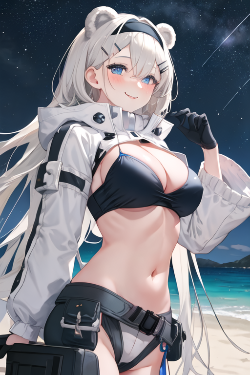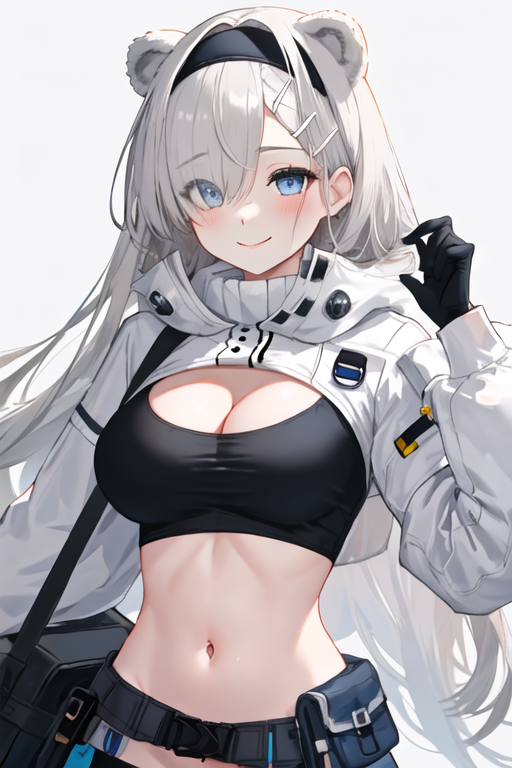 - 필터링된 캐릭터 태그는 동물 귀, 곰 귀, 파란 눈, 가슴, 헤어밴드, 검은 헤어밴드, 긴 머리, 한쪽 눈을 가리는 머리, 큰 가슴, 흰 머리, 매우 긴 머리, 회색 머리, 머리로 보이는 눈입니다. 캐릭터의 핵심 특징(예: 머리색)이 불안정할 경우 이 태그를 프롬프트에 추가할 수 있습니다.