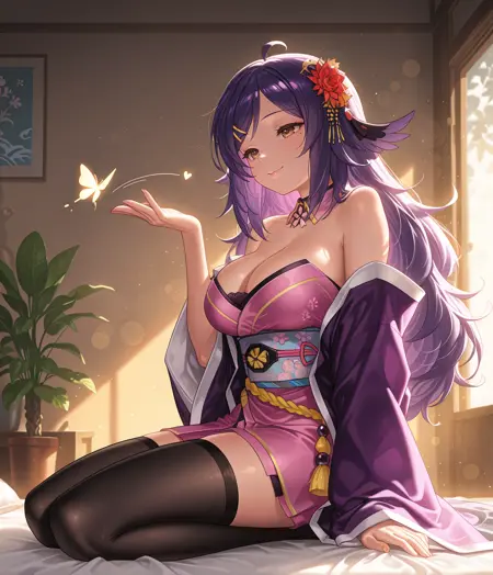 | 训练词汇 | hoshbase, brown eyes, purple hair, long hair, ahoge, hair flower, hair ornament, hairclip, mole under eye, large breasts, cleavage, detached collar, pink dress, short dress, off shoulder, haori, wide sleeves, long sleeves, obi, zettai ryouiki, black thighhighs, okobo,已复制! hoshyuka, brown eyes, purple hair, long hair, high ponytail, ahoge, hair flower, hair ornament, hairclip, red hair ribbon, mole under eye, large breasts, cleavage, purple kimono, print kimono, floral print, collarbone, shawl, off shoulder, wide sleeves, long sleeves, obi, white socks, black tabi,已复制! hoshmeta, red eyes, bags under eyes, purple hair, long hair, hair over one eye, ahoge, hair flower, hair ornament, facial mark, large breasts, cleavage, red kimono, bare shoulders, wide sleeves, long sleeves, brown obi, black thighhighs, thigh strap, platform footwear,已复制! |