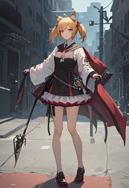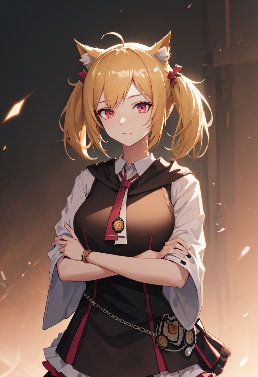 트리거 단어는 sora_arknights이며, 축소된 태그는 animal_ears, blonde_hair, twintails, wolf_ears, red_eyes, animal_ear_fluff, ahoge, bow, short_hair, hair_bow, tail, breasts입니다. 어떤 특징(예: 머리색)이 불안정할 때, 이 태그들을 프롬프트에 추가할 수 있습니다.