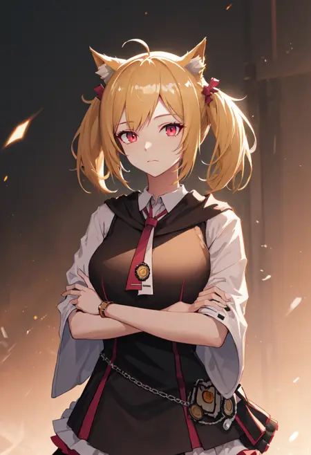 トリガーワードはsora_arknights、削除されたタグはanimal_ears, blonde_hair, twintails, wolf_ears, red_eyes, animal_ear_fluff, ahoge, bow, short_hair, hair_bow, tail, breastsです。あるとき、いくつかの特徴(例:髪の色)が安定しない場合、これらのタグをプロンプトに追加してください。