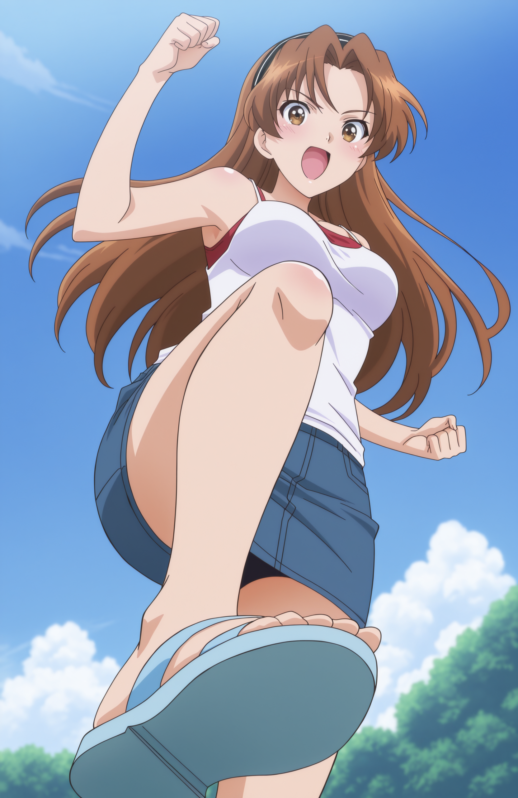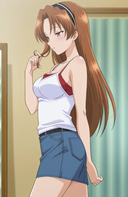 - HikaruBP、茶色の髪、長い髪、茶色の目、ヘアバンド、中程度の胸