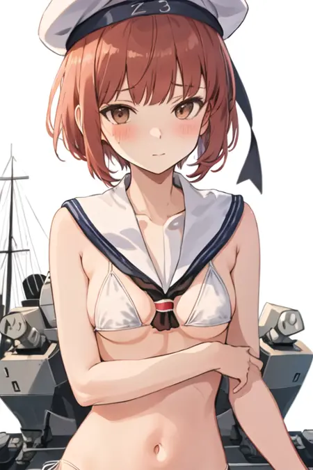 トリガーワードは z3_max_schultz_kantaicollection で、推奨タグは best quality, masterpiece, highres, solo, {z3_max_schultz_kantaicollection:1.15}, short_hair, brown_eyes, brown_hair, hat, sailor_hat, blush です。