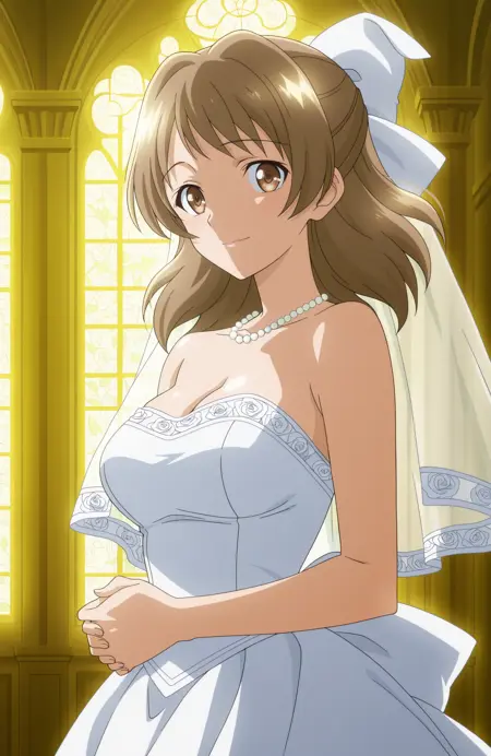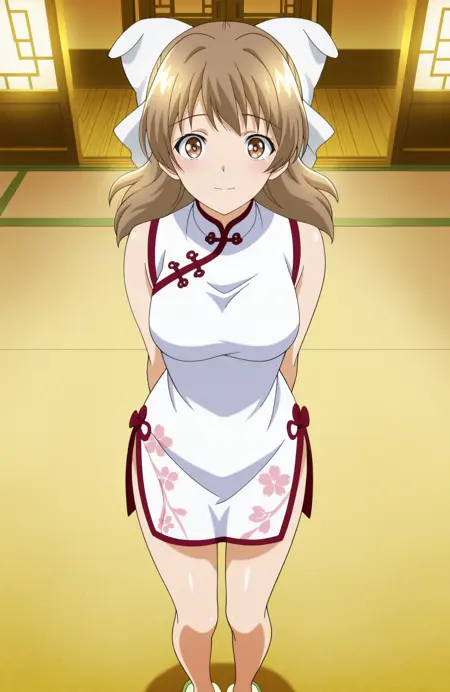 - HotaruBP、茶色い目、茶色い髪、髪飾り、白いリボン、中程度の胸