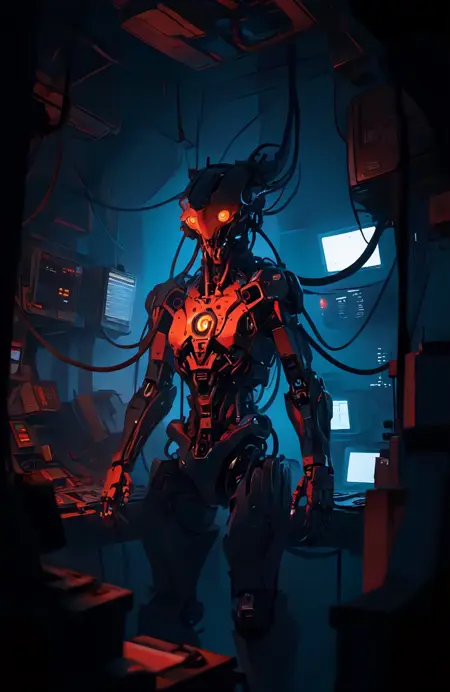 내 다른 모델의 Flux 버전은 약간 약해서 별로 효과를 내지 못했어요. Chroma는 훨씬 더 잘 따라줘요. "The Edgy Mech" 모델과 비교하면, 이 모델은 최소 100장 이상의 이미지가 추가되었고, 사이버웨어 또는 그와 유사한 것들의 이미지도 포함되어 있습니다.