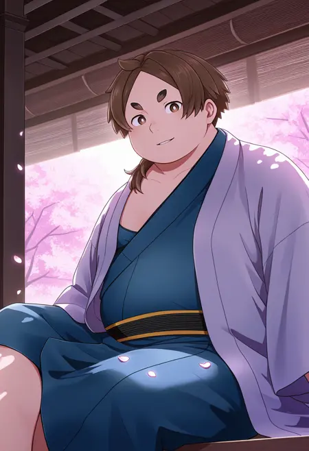 ネガティブプロンプト: short ponytail, purple kimono, blue haori, two-tone clothes, print clothes, thick neck, small penis, convenient censoring, abs, bara, pectorals,_