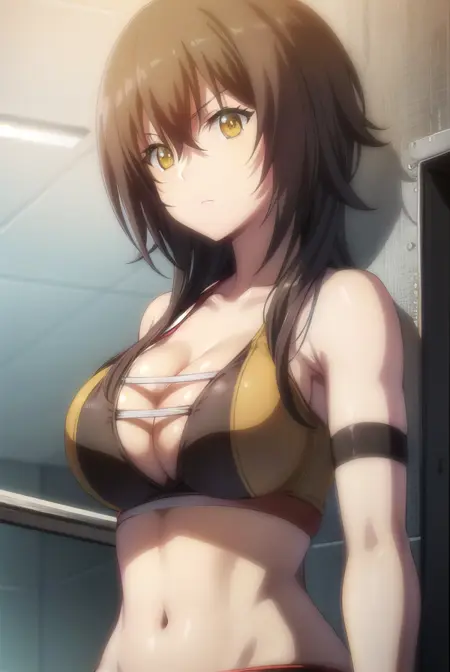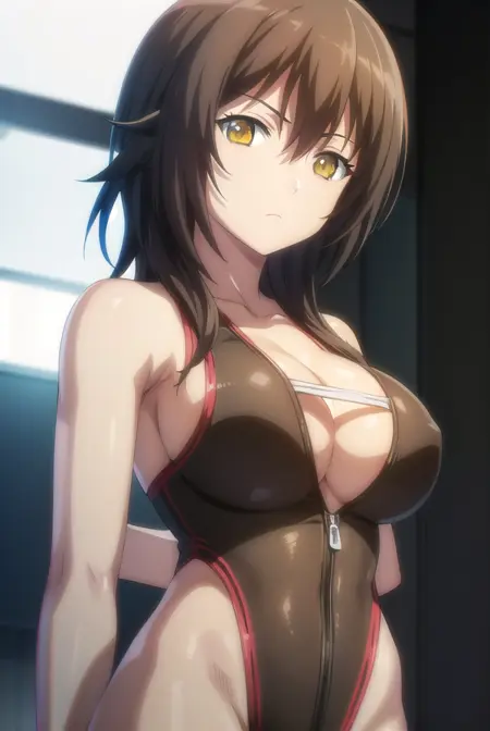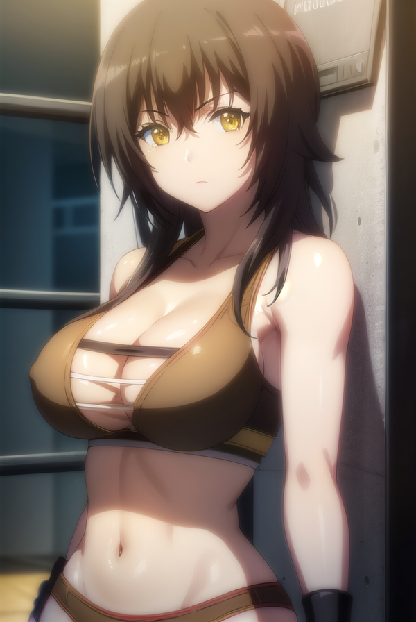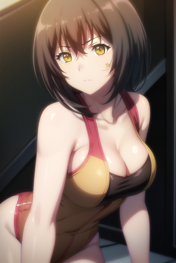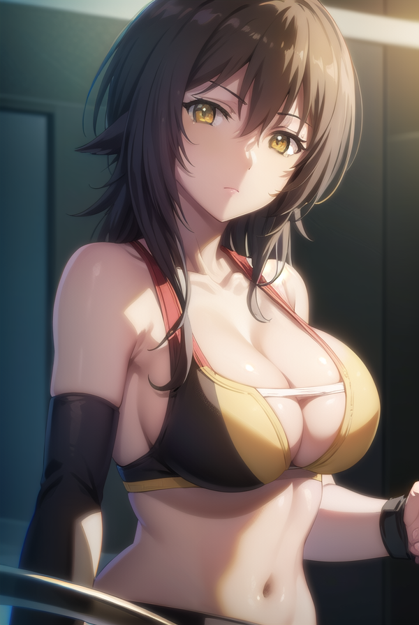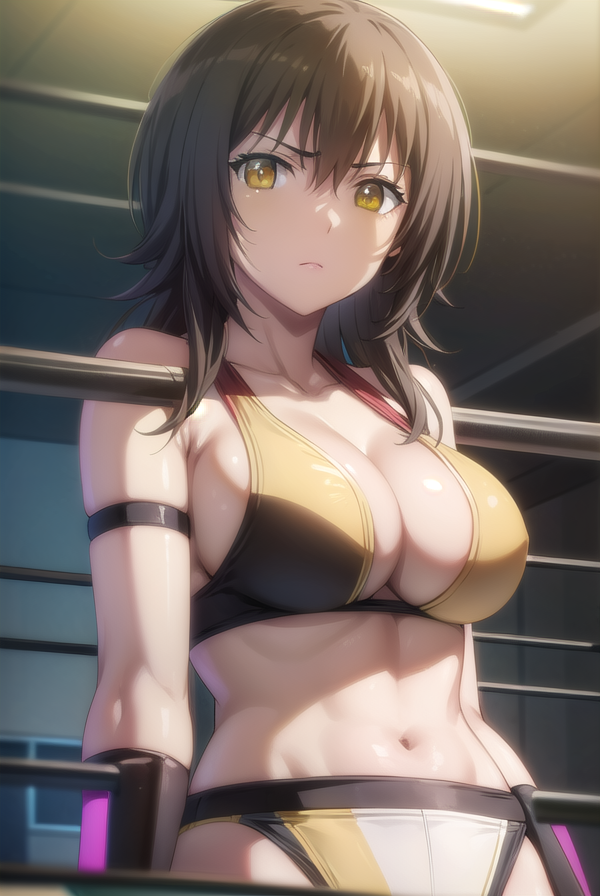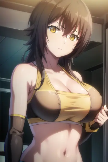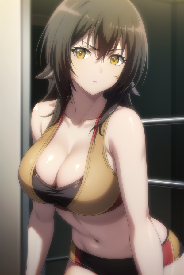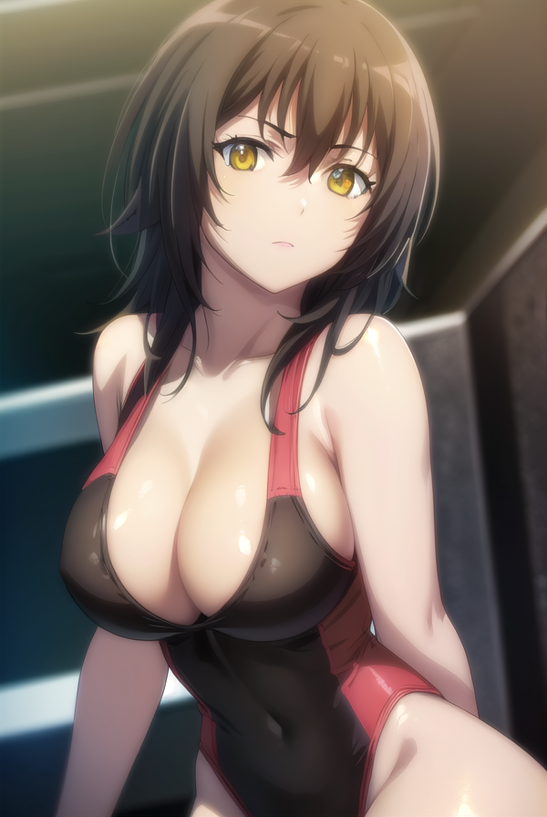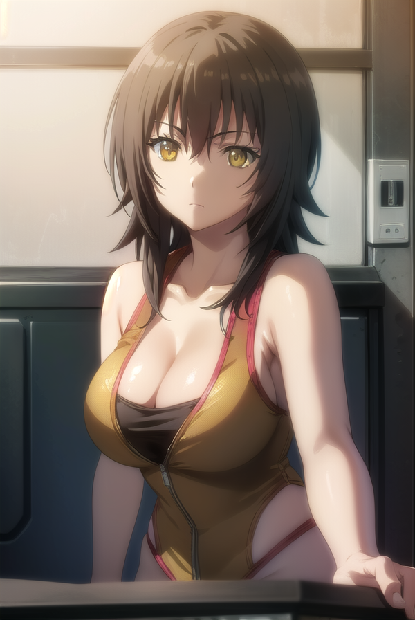 misaki toyoda、短髪、黒髪、(黄色い目:1.5)