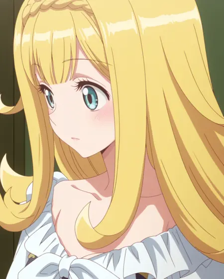 Lieselotte Homuross, Lieselotte, long hair, 1girl, solo, smile, ahoge, braid, choker, looking at viewer, upper body, crown braid, cloak, black choker, closed mouth