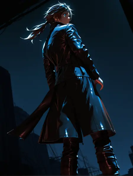 의상 프롬프트: jacket, coat, long sleeves, turtleneck, leather jacket, black jacket, boots, pants