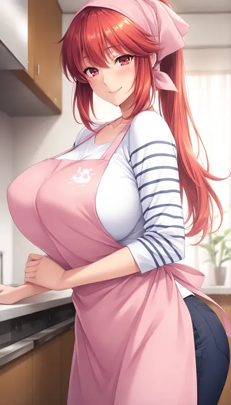 小田清子、赤髪、ロングヘア、ポニーテール、サイドヘア、赤い目