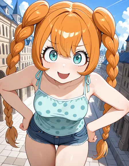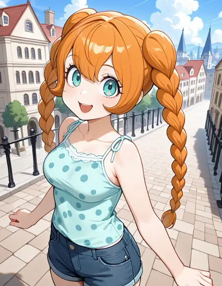 | 训练词汇 | (marshmallowr-sandy), (aqua eyes, tareme, eyelashes, orange hair, twintails, braid, bangs, hair between eyes, medium breasts) 已复制! (aqua camisole, polka dot camisole, dark denim shorts) 已复制! (light blue collared shirt, leaf print, blue center trim, long sleeves, dark denim shorts) 已复制! (grey turtleneck t-shirt, black belt, multicolored skirt, white skirt, orange trimmed skirt, miniskirt, orange polka dot) 已复制! (blue hoodie, hood down, green miniskirt) 已复制! (blue track jacket, zipper, denim skirt) 已复制! (polo shirt, short sleeves rolled up, belt, short shorts) 已复制! (polo shirt, sleeveless, belt, short shorts) 已复制! (sleeveless dress) 已复制! (t-shirt, short sleeves, belt, short shorts) 已复制! (raglan sleeves t-shirt, short sleeves, belt, short shorts) 已复制! (striped t-shirt, short sleeves, belt, short shorts) 已复制! (sweater vest, shirt, long sleeves, miniskirt, pleated skirt) 已复制! (white dress, strapless dress, necklace, white elbow gloves, back bow) 已复制! (swimsuit, blue tankini, white trim, navel, white belt, blue swim shorts) 已复制! (brown knee boots) 已复制! |