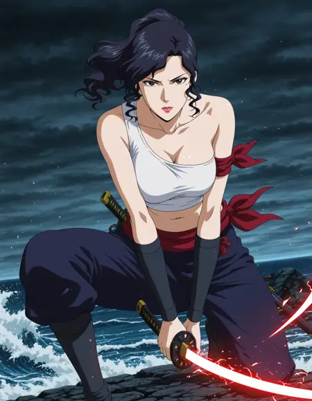 | Trained Words | black eyes,black hair,blue hair,ponytail,wavy hair,mole under eye,lipstick,collarbone,milf,mature female,large breasts,white tank top,single strap,armband,scarf around waist,navel,midriff,blue puffy pants,asymmetrical clothes,Copied! black eyes,mole under eye,ninja,ninja mask,hood,forehead protector,long sleeves,sash,puffy pants,dark blue pants,large breasts,mature female, milf,knee boots,Copied! |