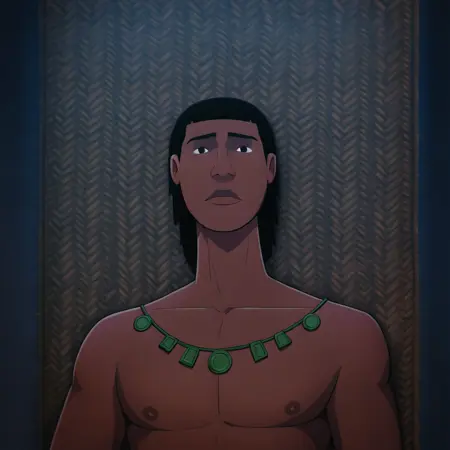 Y0ung Y0hualli C0atl,1boy, solo, male focus, solo, dark skin, dark-skinned male, black hair, black eyes,