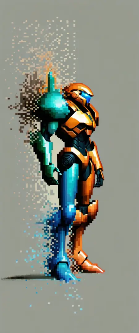 This is Aether PIXEL - a LoRA that makes stuff fall apart into pixels. It operates well without negative prompting for straightforward tasks. Be sure to explore the prompt examples alongside the images in this gallery.