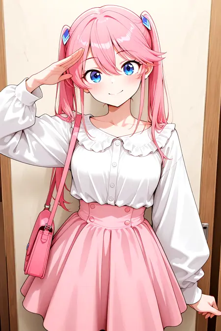 Shiunji_Ou, long hair, pink hair, blue eyes, twintails, hair between eyes, hair ornament