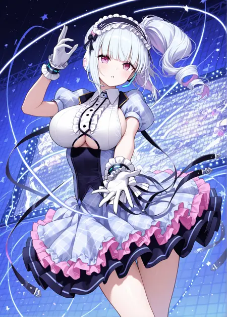 muse: dido \(muse\) \(azur lane\), 사이드 폰테일, 아이돌 복장, 흰 장갑,