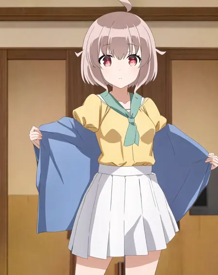 Meiko, short sleeves, white skirt, blouse, yellow shirt