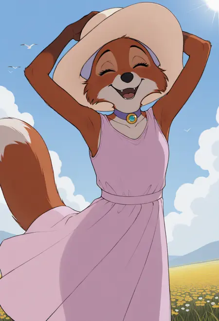 Maid_Marian, solo, red fur skin, pink dress, red eyes, fox tail, furry, fox, 4 fingers