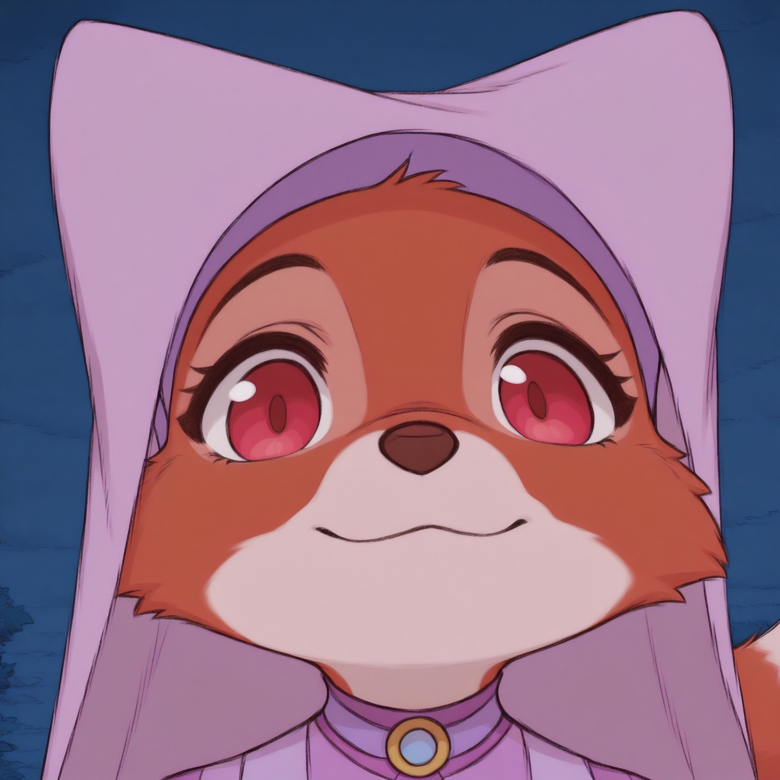 maid_marian, pink dress, pink headwear, orange fur, red eyes.