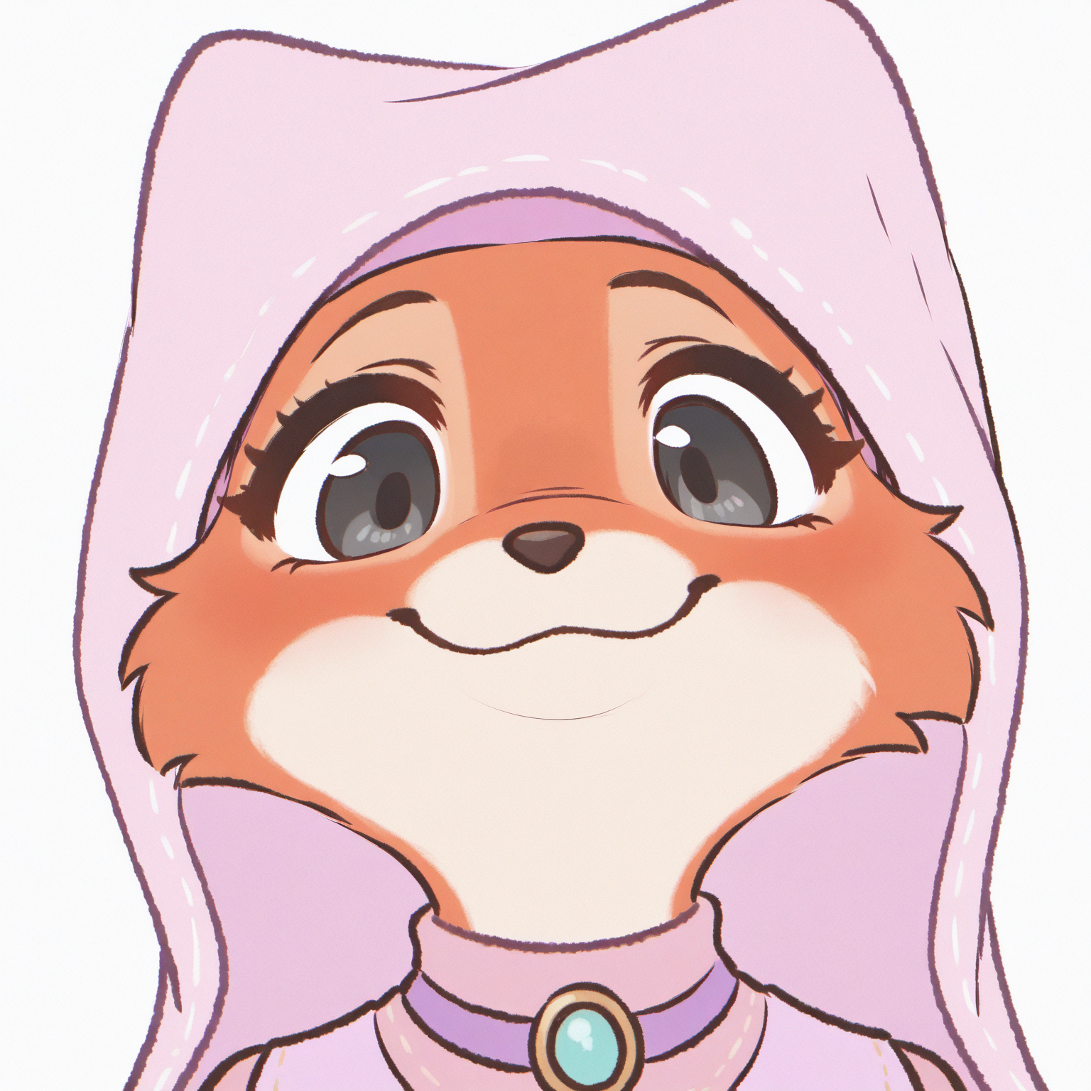 m4r14n-p3np3n-st4le, orange fur, black eyes, pink dress, pink veil, fluffy tail