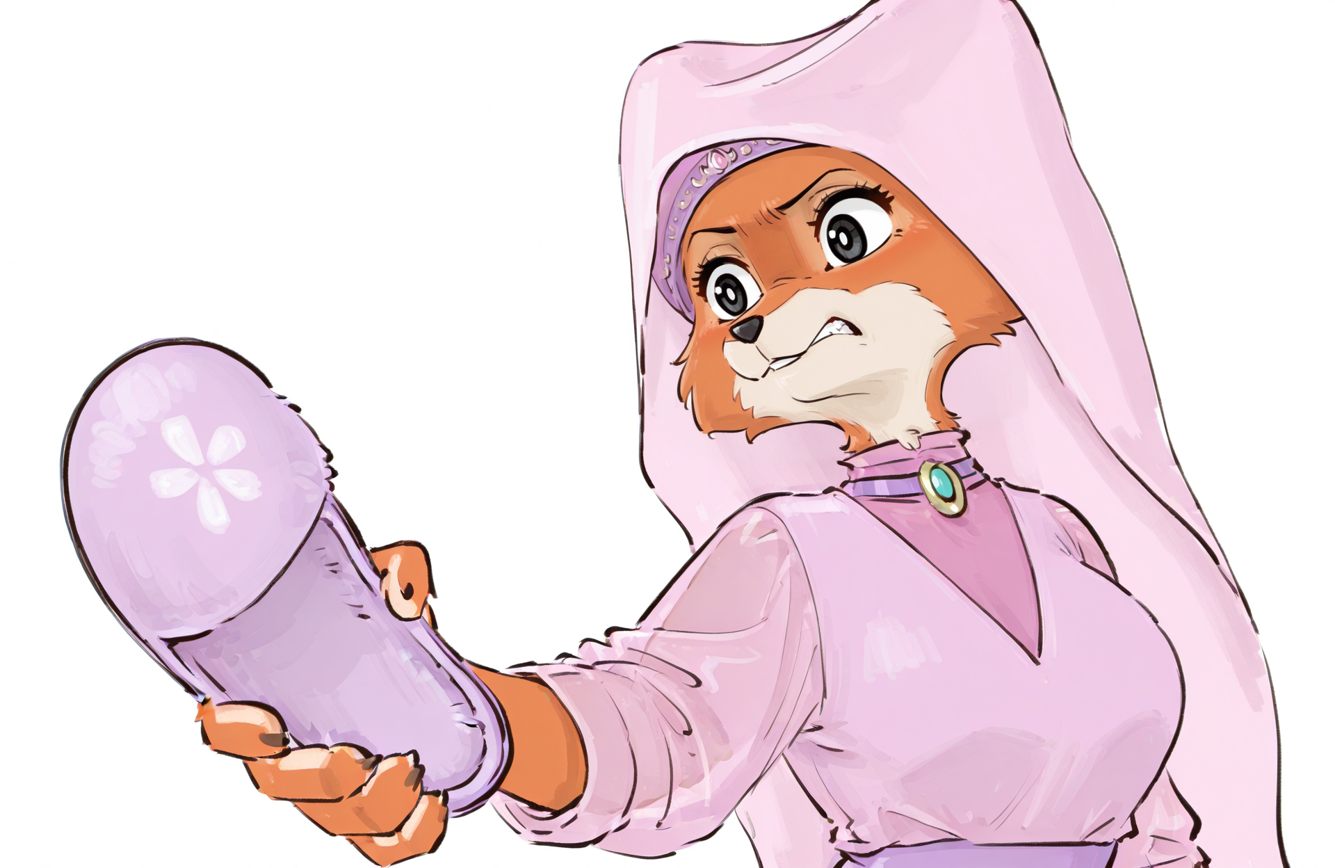 maid_marian, pink dress, pink headwear, orange fur, red eyes.