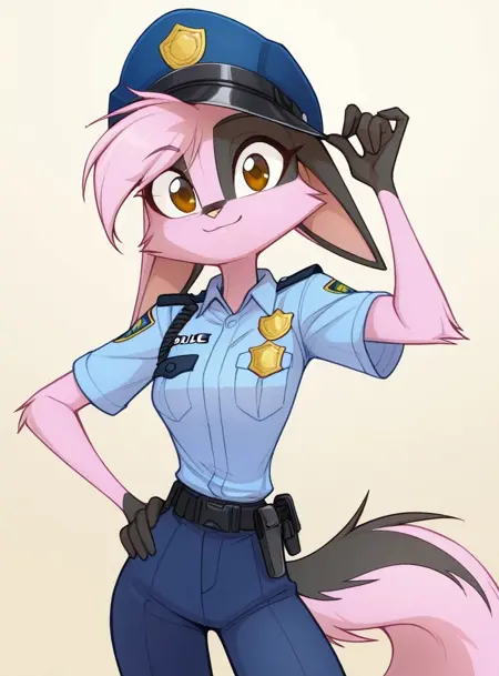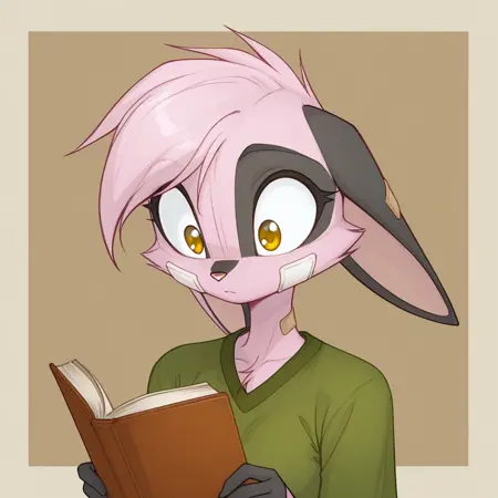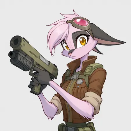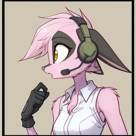 viriathus_vayu, dreamkeepers, 1girl, 动物耳朵, 兽人, 兽人女性, 单人, 尾巴, 身体毛发, 动物鼻子, 短发, 粉色头发, 粉色毛发, 黄色眼睛, 棕色眼睛, 手套,