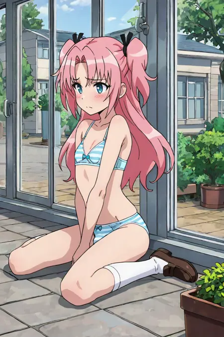内衣,条纹服装,内裤,胸罩,男性焦点,条纹内裤,坐着,仅穿内衣,袜子,隆起,蝴蝶结,鞋子,脸红,白色袜子