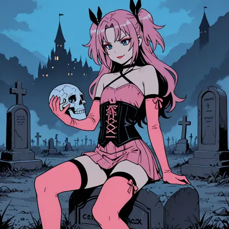 1个女孩,粉发,长发,蓝眼,发带,齐刘海,两侧向上