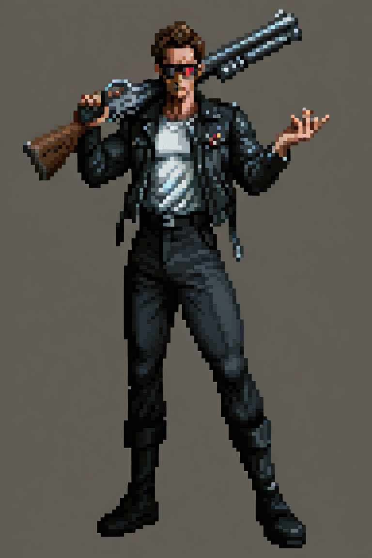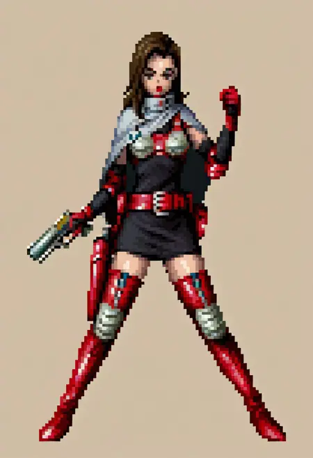 タグ: masterpiece, best quality, amazing quality, very aesthetic, absurdres, newest, MAJTC, pixel art, simple background, full body
