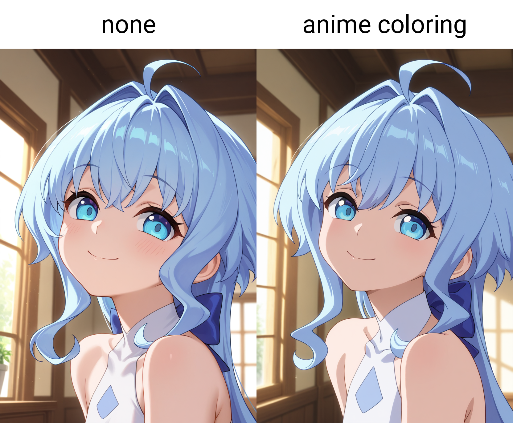 Using 'anime coloring' in the prompt will make the illustration look closer to an anime style.