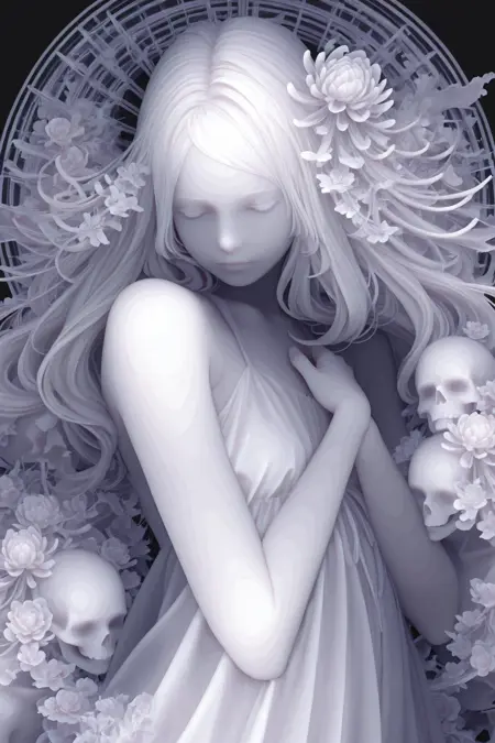 고마츠 카즈키는 일본 현대 예술가로, 독창적인 ‘거리감주의’ 스타일로 유명합니다. 그는 아크릴, 수채화 등 다양한 색채를 사용해 섬세한 그라데이션을 통해 3D 효과를 지닌 손으로 그린 작품을 만들며, 조각 같은 입체감과 디지털 아트의 공간감을 동시에 구현합니다. 그의 작품은 주로 소녀들의 집단 이미지를 주제로 하며, 해골, 무기 등 어두운 요소를 결합해 여성의 다양한 정서와 힘을 표현합니다. (위 내용은 백과사전에서 인용)