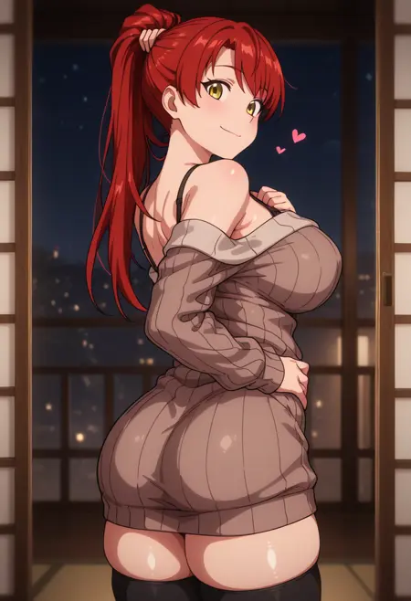 服装触发词:服装1;纹理毛衣、大腿袜、露肩、黑色内衣,