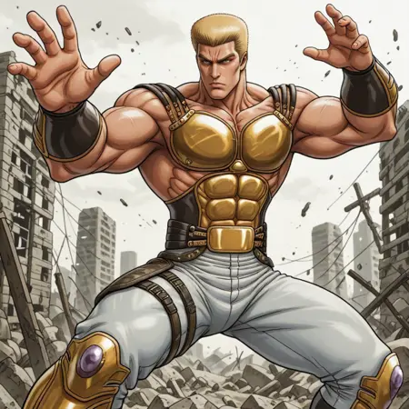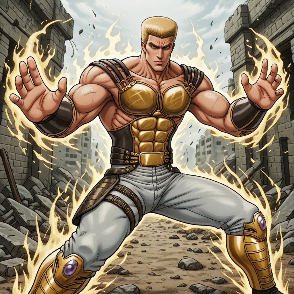 来自《北斗神拳》,守护天帝的元斗皇拳传承者,金色的法尔科。