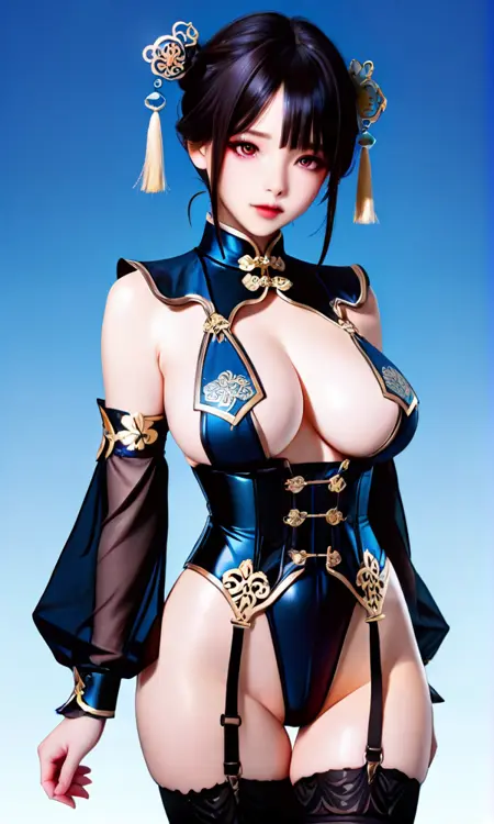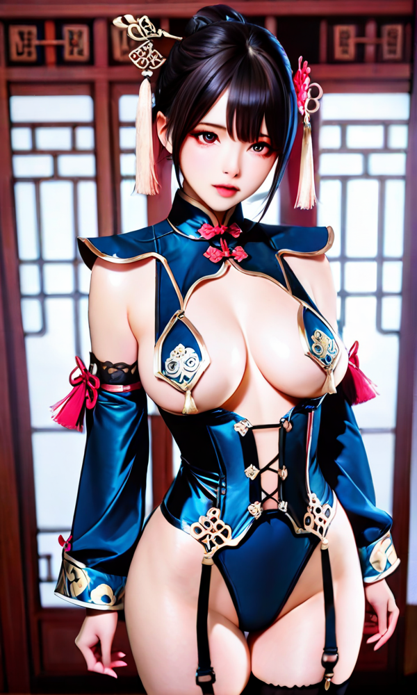 프롬프트 단어: chinese-style-costumes, thighhighs, detached sleeves, panties, breast curtains, revealing clothes, underwear